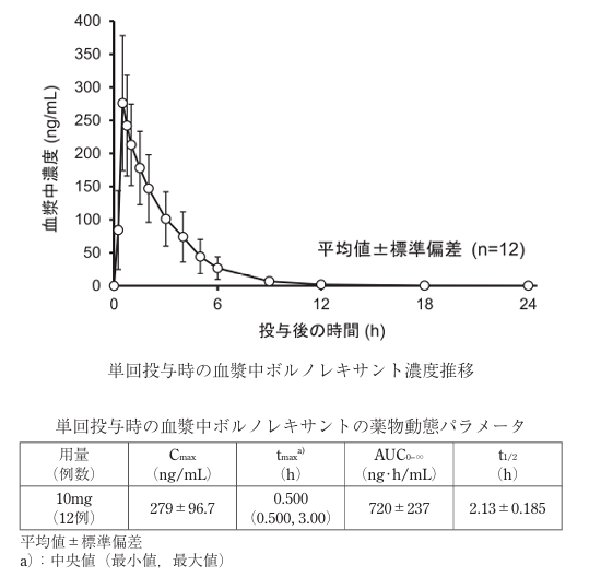 ボルズィの特徴として、内服後約30~45分で最高血中濃度に達し、入眠効果にすぐれているとされています。また、半減期は約1時間半から2時間と短く、翌日への持ち越しが少ないとされています。寝つきが悪い方には特に良い適応となるかもしれません。